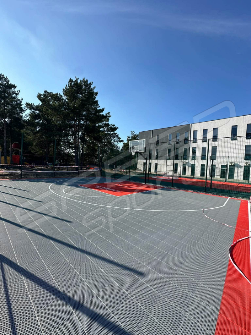 Boisko koszykówka 3×3, z nawierzchni polipropylenowej hexagonalnej to nasza niedawna realizacja z województwa kujawsko-pomorskiego. Boisko w świetnie dopasowanych kolorach – szaro-czerwone.