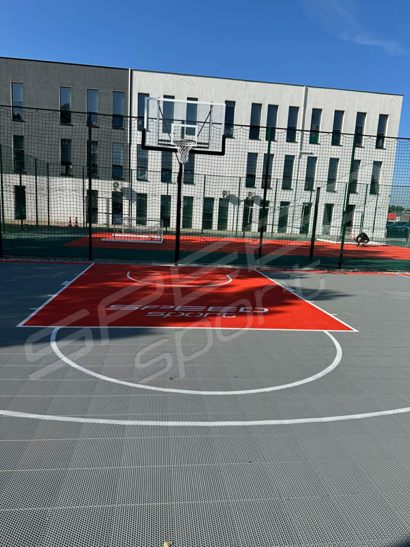 Profesjonalne boisko sportowe, z nawierzchni modułowej, mobilnej, polipropylenowej – trwałe, estetyczne i bezpieczne.