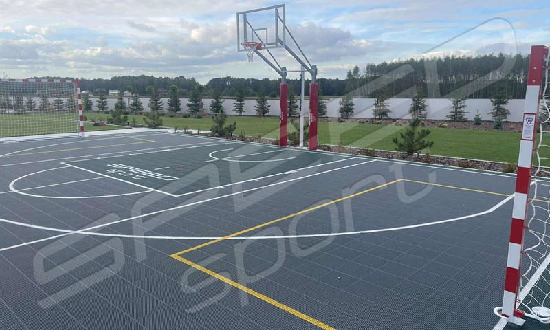 Profesjonalne boisko, wykonane z nawierzchni modułowej, hexagonalnej. W łatwy sposób montowane na utwardzonej podbudowie, w kolorze grafitowym i zielonym.