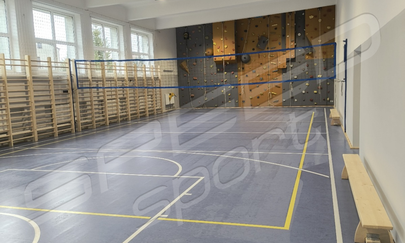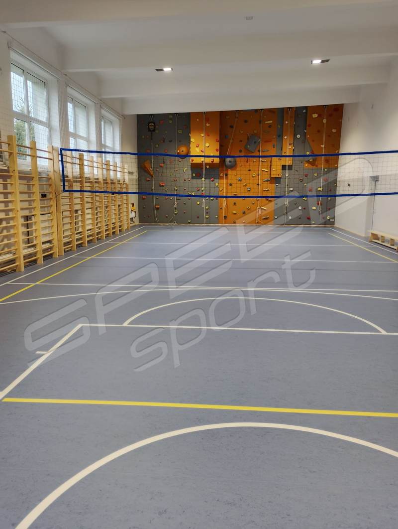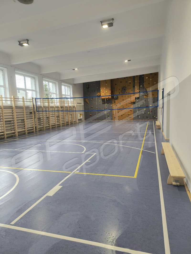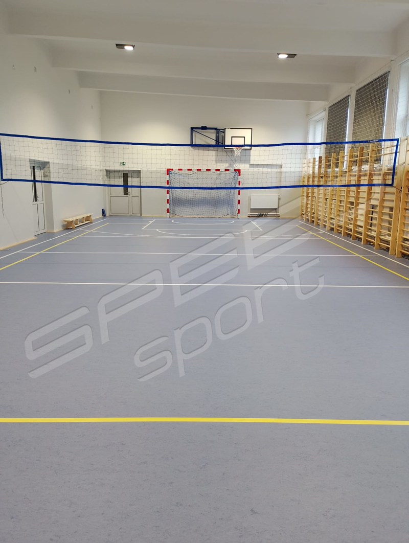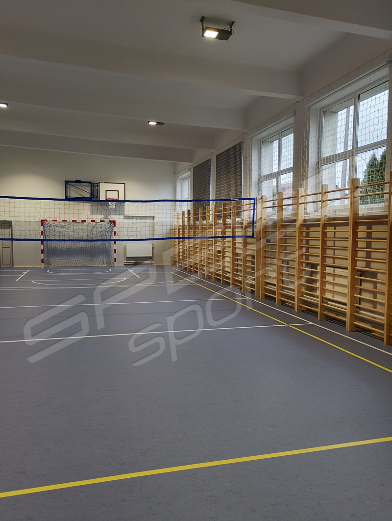 Remont podłogi w hali sportowej – niedawna realizacja w województwie mazowieckim. Hala zyskała całkiem nowy i stylowy wygląd. Została całkowicie odmieniona i odświeżona. Remont nadał jej nowoczesnego wyglądu. Podłoga sportowa powierzchniowo-punktowa, elastyczna, w systemie legarowym. Górną warstwę stanowi linoleum.