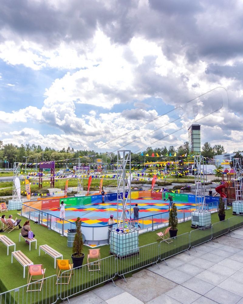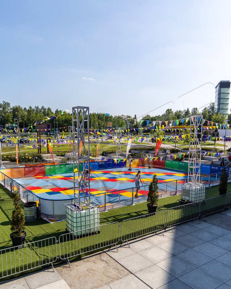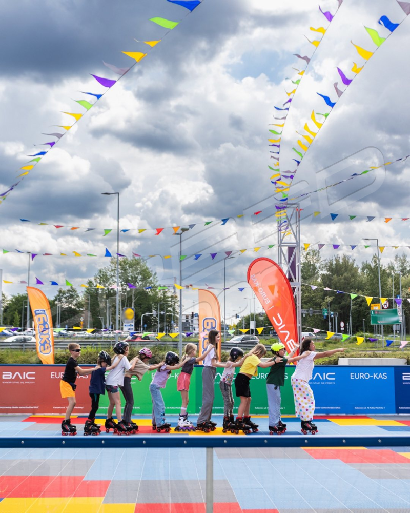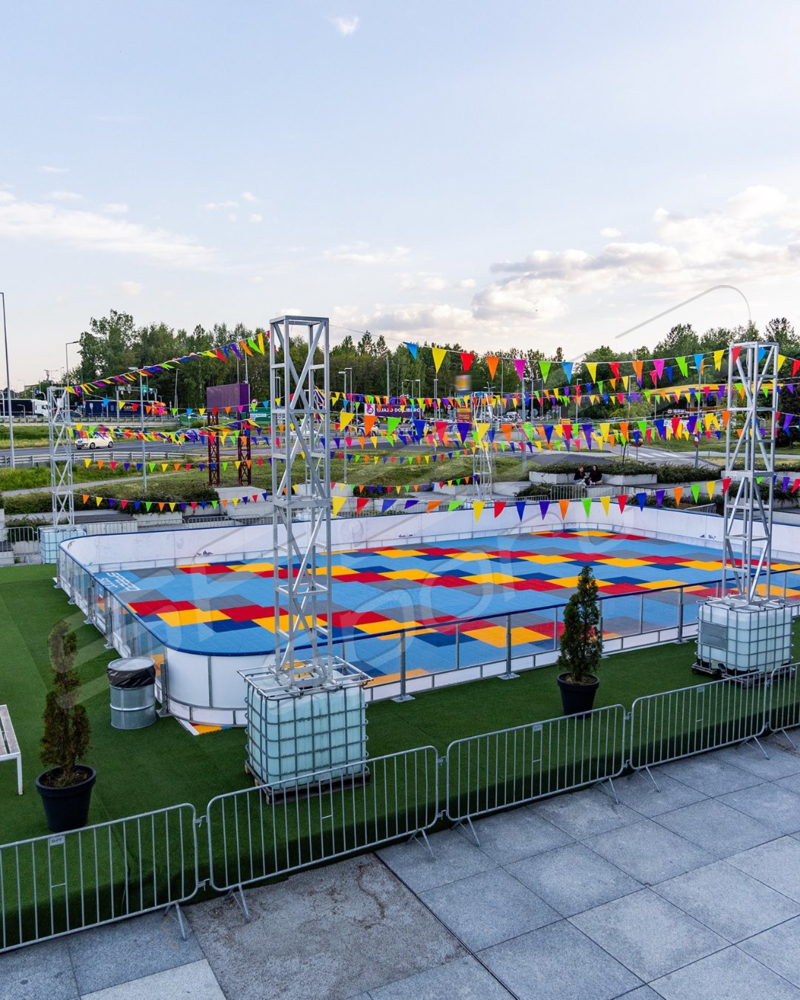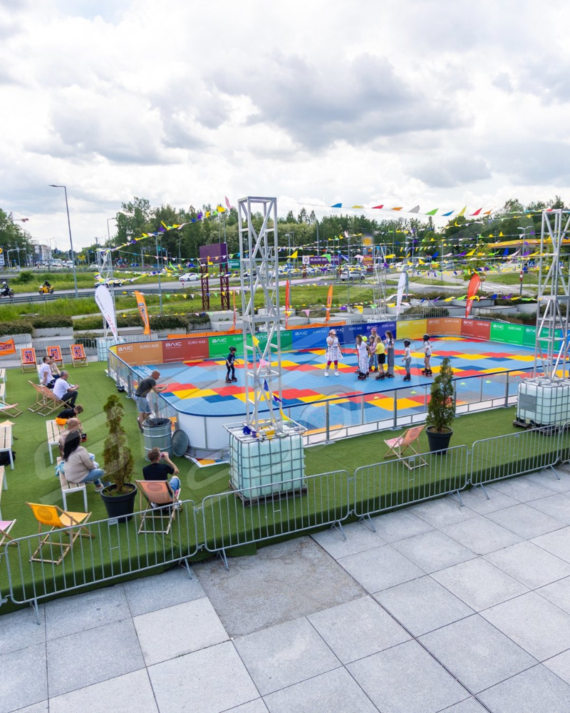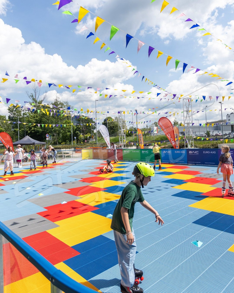 Wrotkowisko z nawierzchni hexagonalnej wypożyczone na wakacyjne wydarzenie w województwie śląskim.